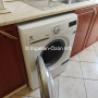 A konyhában a beépített bútorokon kívül van mosógép, hűtőszekrény, tűzhely sütővel.
